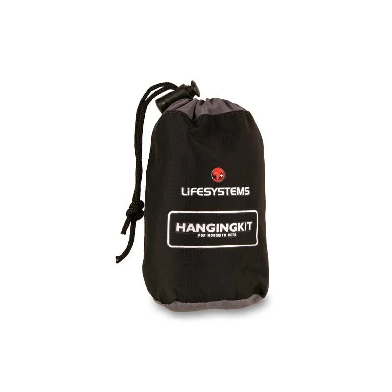 Myggnett - hengesett fra LifeSystems letter myggnettoppheng. Settet gjør deg mindre avhengig av takhøyde og materiale i veggene og taket på boligen. Innholdet samles i en praktisk pose med snorlukking.