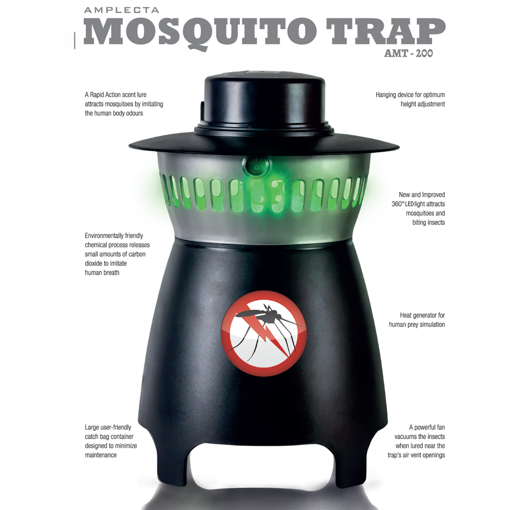 AMT-200 er en rimelig, miljøvennlig, elektrisk, liten myggfelle som er utrolig enkel å håndtere. Bare plugg inn støpselet, bytt duften en gang i måneden og tøm beholderen med insekter etter behov. Det spiller ingen rolle hvor stor eller liten tomten din er, området som maskinen kan tiltrekke mygg og insekter til er rundt 1500m².